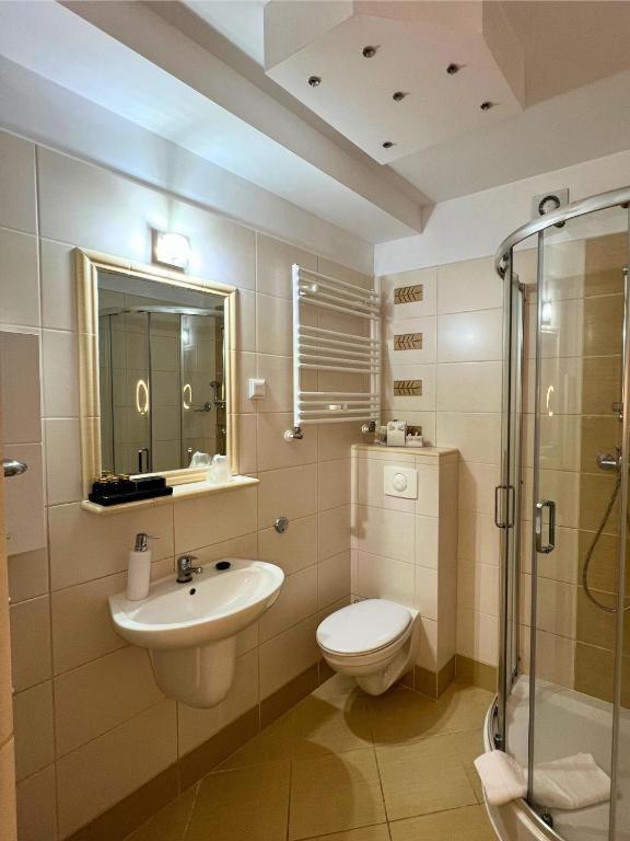 Pokój Czteroosobowy. Featuring free toiletries, this quadruple room includes a private bathroom with a shower, a hairdryer and slippers. This quadruple room has a tea and coffee maker, heating and a flat-screen TV. The unit has 4 beds. Powierzchnia pokoju ok.: 30 mkw. ;