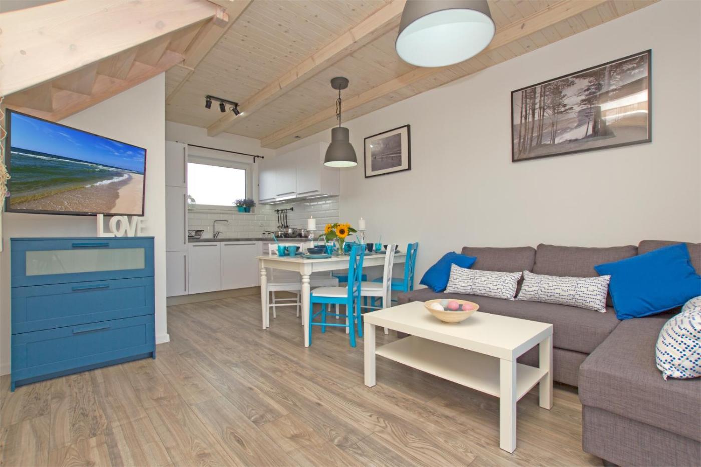 W Dębkach czeka luksusowy apartament DeLuxe, idealny dla grupy do 8 osób, który zapewnia komfortowe i eleganckie zakwaterowanie nad morzem.