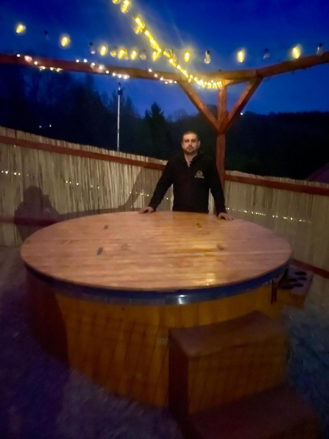 Namiot. The pool with a view and fireplace are the standout features of this tent. Guests will find a stovetop, a refrigerator, kitchenware and a microwave in the well-equipped kitchen. The tent also comes with a barbecue. This tent has a seating area, an outdoor dining area, lake views and a shared bathroom. The unit has 5 futons. Namiot - 5 osobowy. Powierzchnia pokoju ok.: 81 mkw.