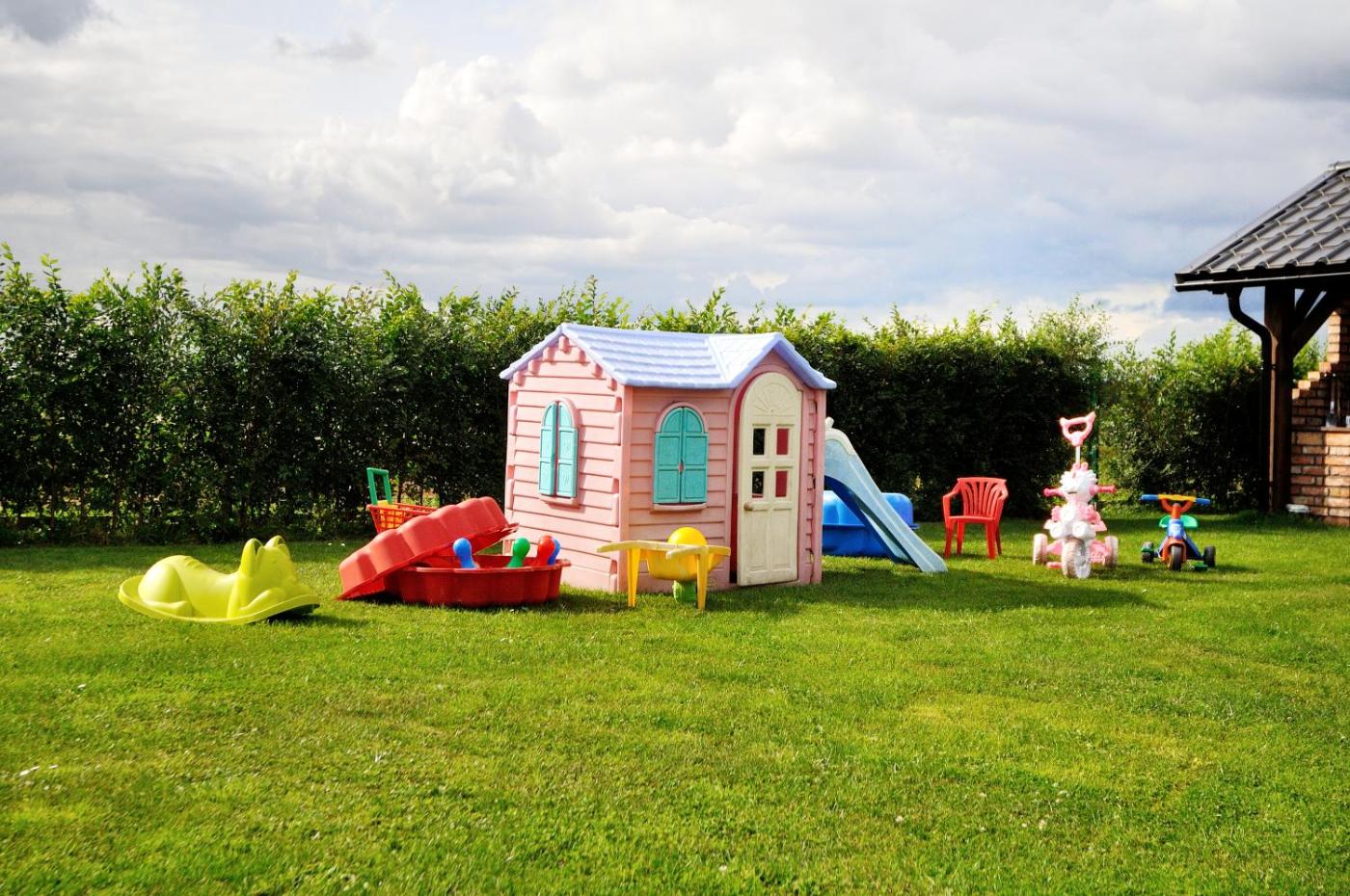 Dom z 3 sypialniami – 1. The fireplace is a top feature of this holiday home. Boasting a private entrance, this holiday home comes with 1 living room, 3 separate bedrooms and 2 bathrooms with a shower and a hairdryer. Guests will find a stovetop, a refrigerator, kitchenware and a microwave in the fully equipped kitchen. The holiday home also includes a barbecue. Featuring a terrace with garden views, this holiday home also features a washing machine and a flat-screen TV. The unit has 6 beds. Dom wakacyjny - 9 osobowy. Powierzchnia pokoju ok.: 100 mkw. ;