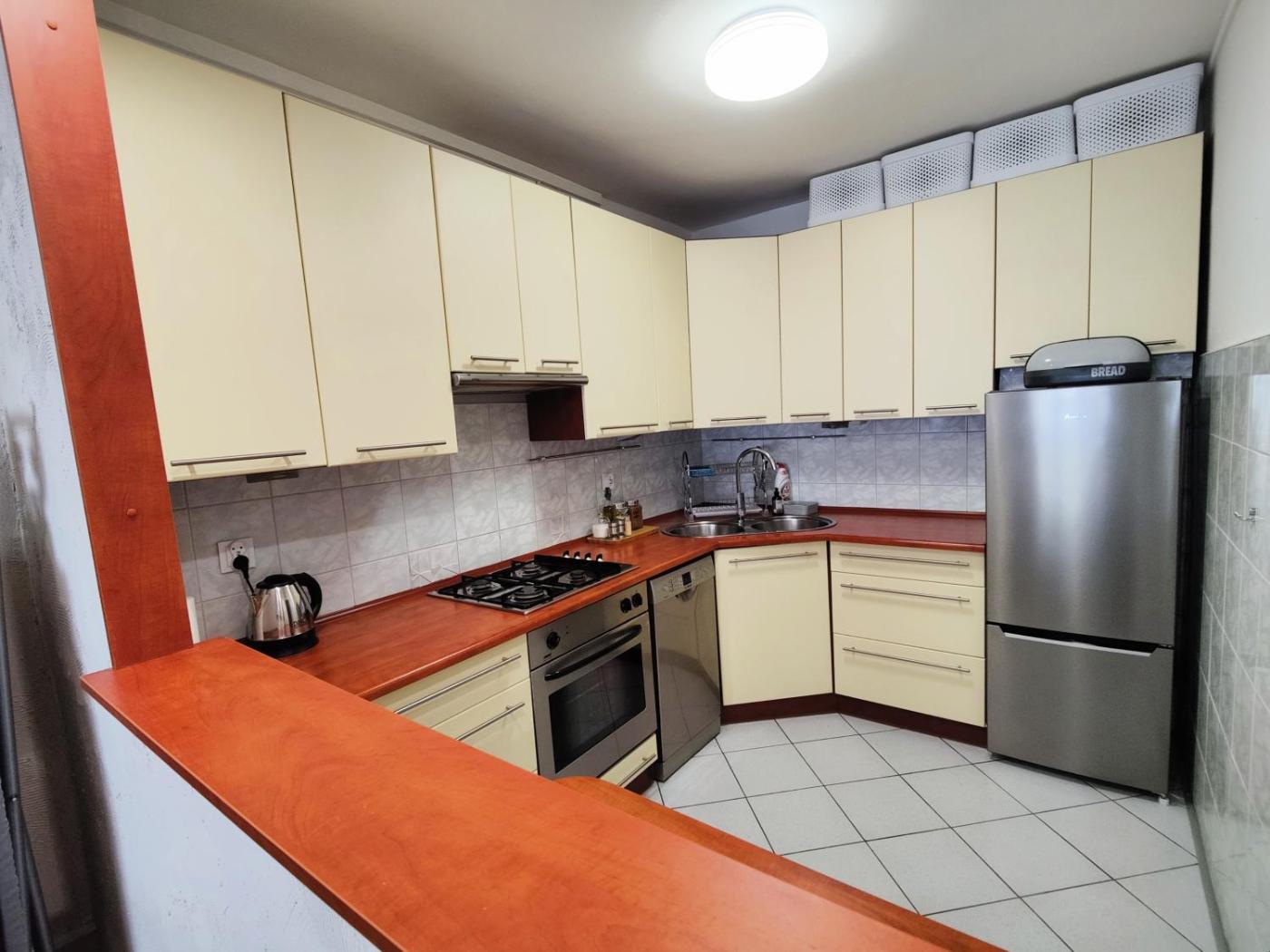 Apartament z 1 sypialnią. This apartment consists of 1 living room, 1 separate bedroom and 1 bathroom with a shower and a hairdryer. Guests can make meals in the kitchen that is equipped with a refrigerator, a dishwasher, kitchenware and an oven. The apartment provides a flat-screen TV with streaming services, a washing machine, a tea and coffee maker, a wardrobe as well as garden views. The unit offers 3 beds. Apartament - 4 osobowy. Powierzchnia pokoju ok.: 38 mkw.
