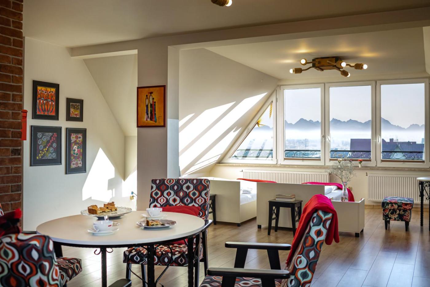 Apartament z 2 sypialniami i widokiem na góry. This spacious apartment consists of 1 living room, 2 separate bedrooms and 2 bathrooms with a shower and a hairdryer. In the kitchen, guests will find a refrigerator, kitchenware and a microwave. The air-conditioned apartment provides a flat-screen TV, a coffee machine, a dining area, a wardrobe as well as mountain views. The unit offers 4 beds. Apartament - 5 osobowy. Powierzchnia pokoju ok.: 100 mkw. ;