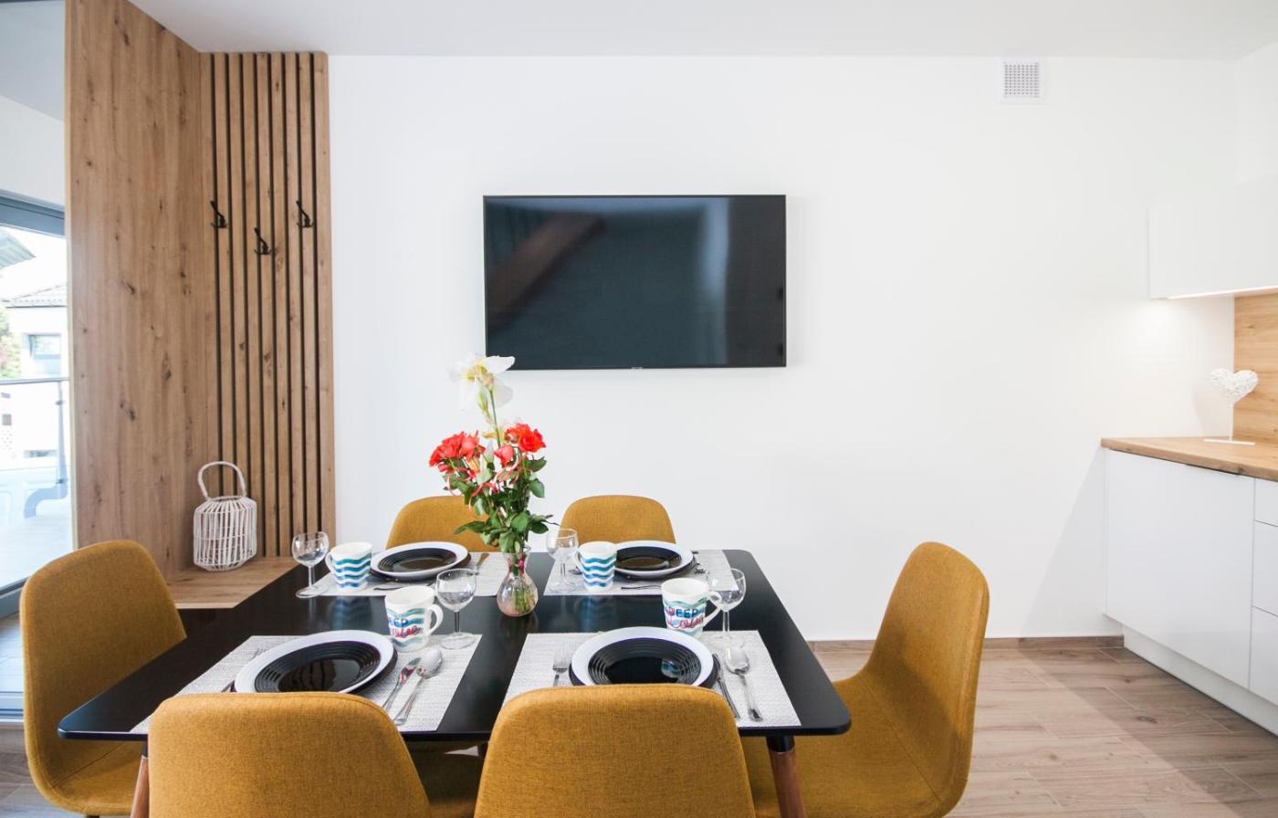 Studio. This studio is comprised of a flat-screen TV with cable channels, a private bathroom as well as a balcony with garden views. The unit has 4 beds. Studio - 4 osobowy. Powierzchnia pokoju ok.: 24 mkw. ;
