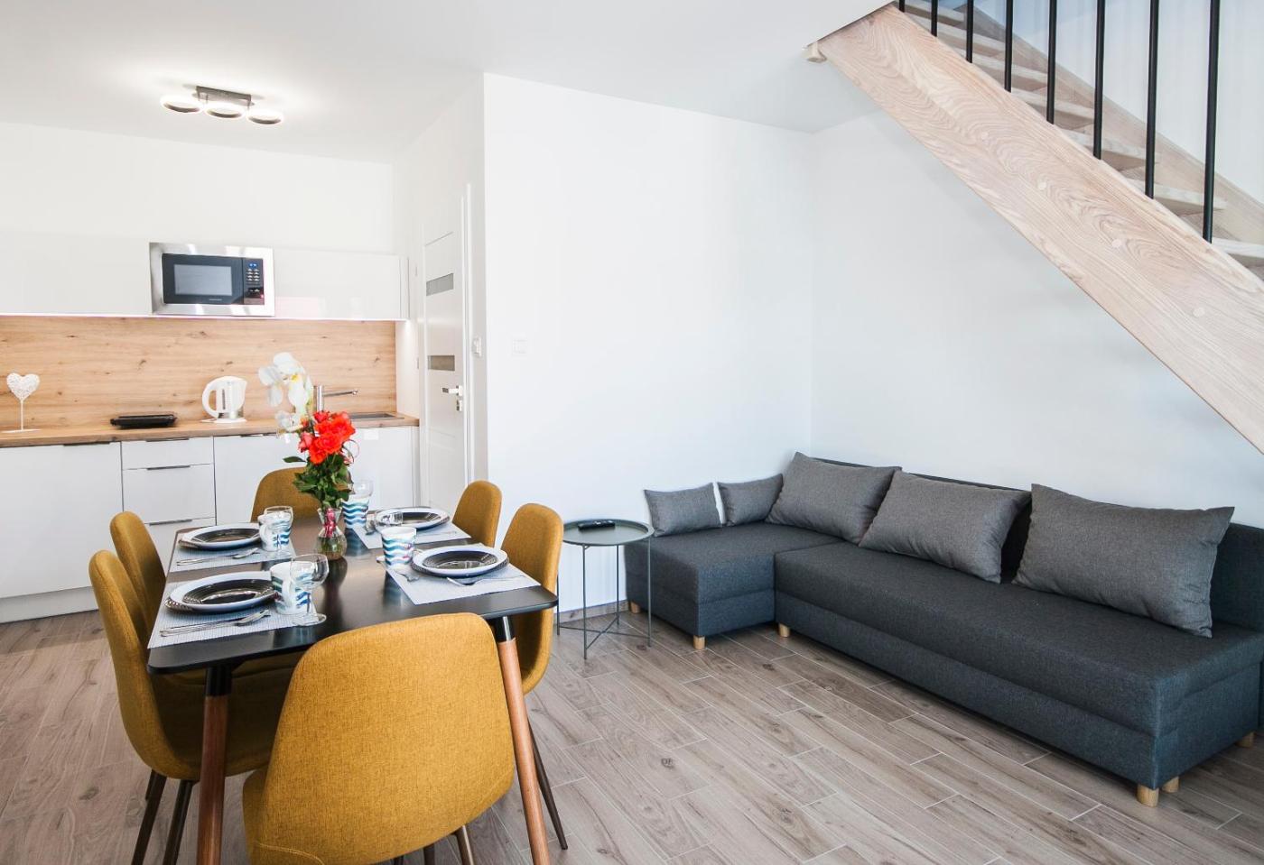 Apartament dwupoziomowy. Boasting a private entrance, this apartment also features 1 living room, 1 separate bedroom and 1 bathroom with a walk-in shower. The fully equipped kitchen has a stovetop, a refrigerator, a dishwasher and kitchenware. Featuring a terrace with garden views, this apartment also features a tea and coffee maker and a flat-screen TV with cable channels. The unit has 3 beds. Apartament - 5 osobowy. Powierzchnia pokoju ok.: 42 mkw. ;