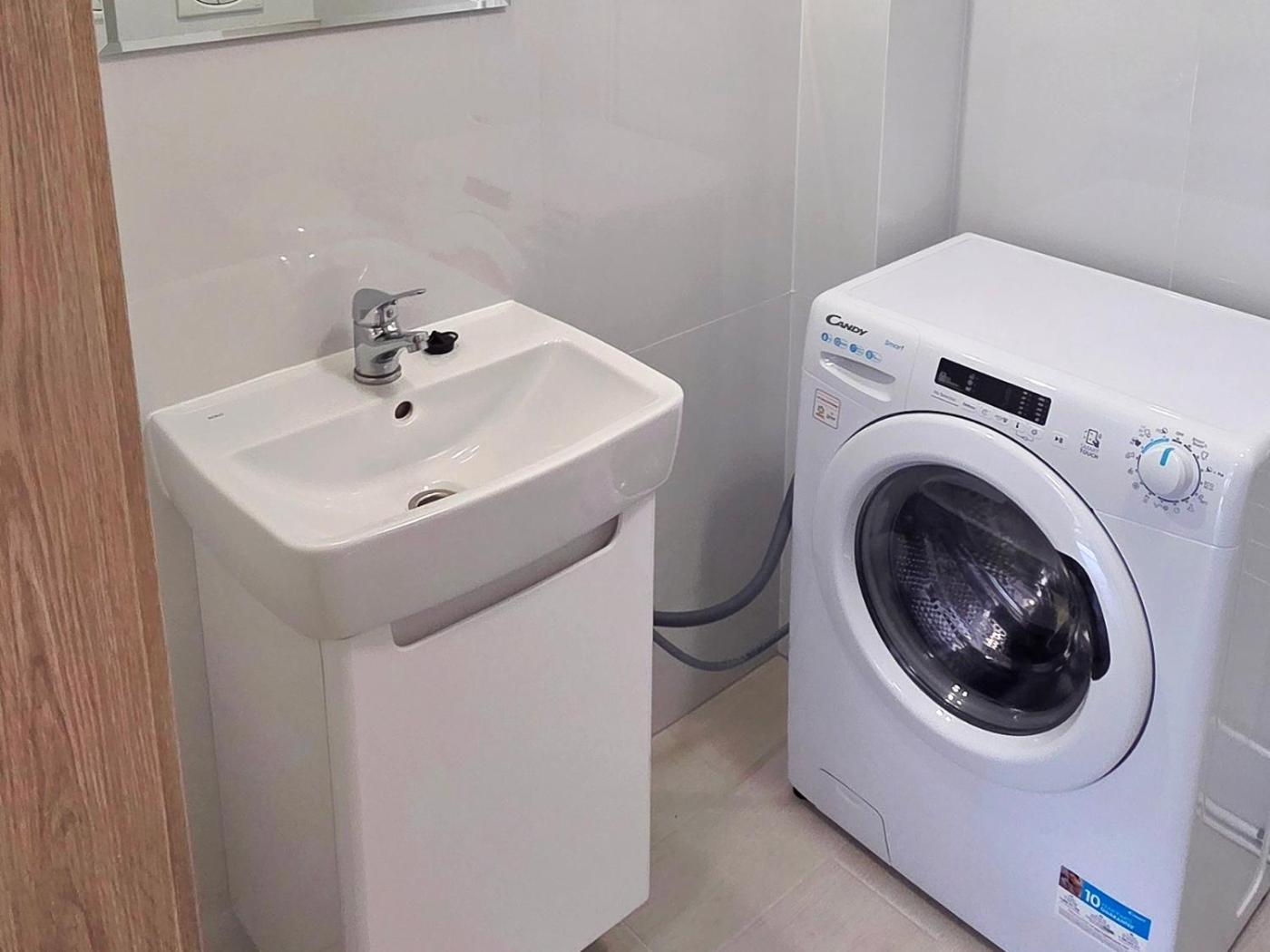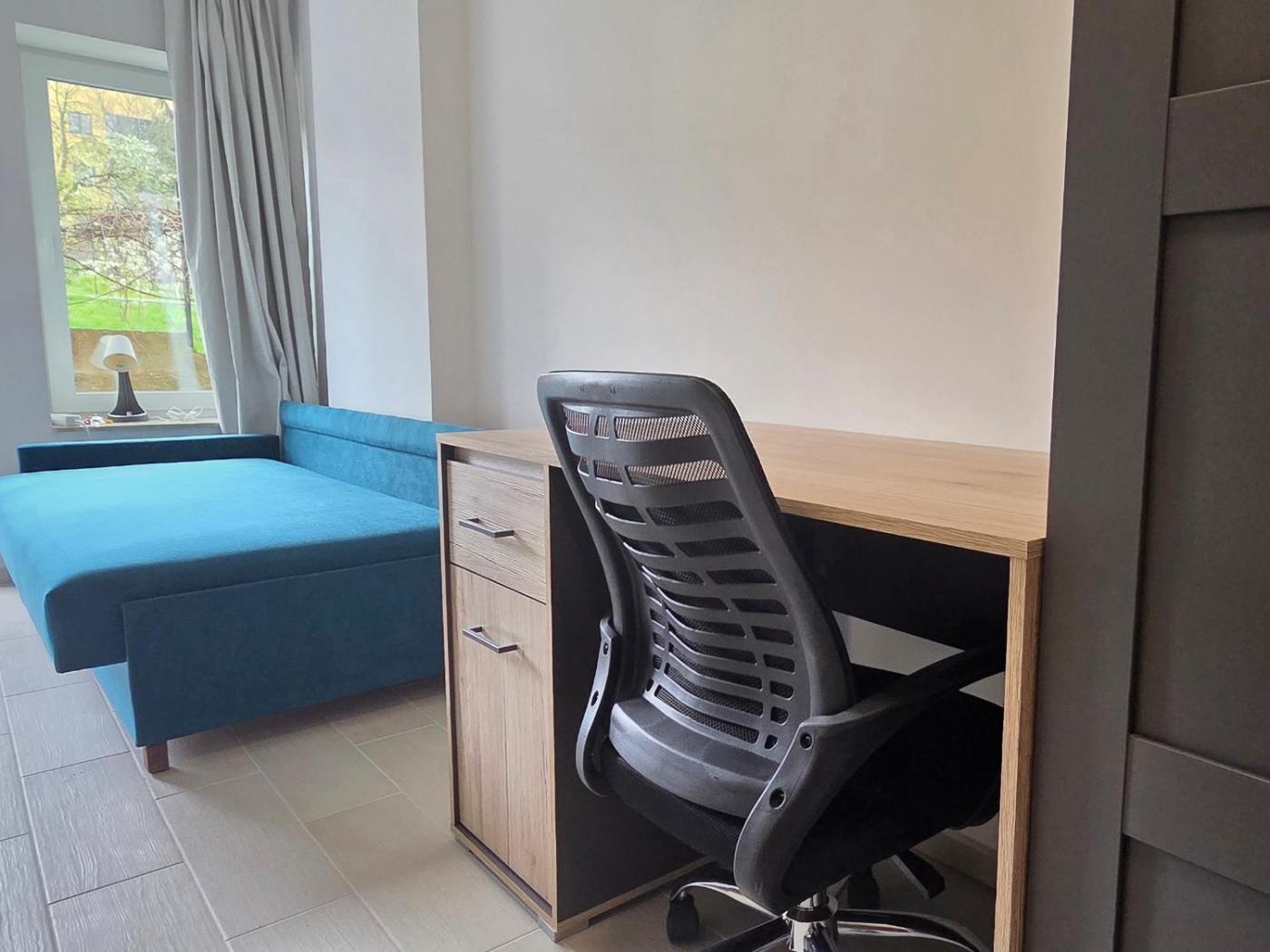 Studio z rozkładaną sofą. The studios kitchen is available for cooking and storing food. The studio offers a washing machine and a terrace. The unit has 1 bed. Powierzchnia pokoju ok.: 15 mkw. ;