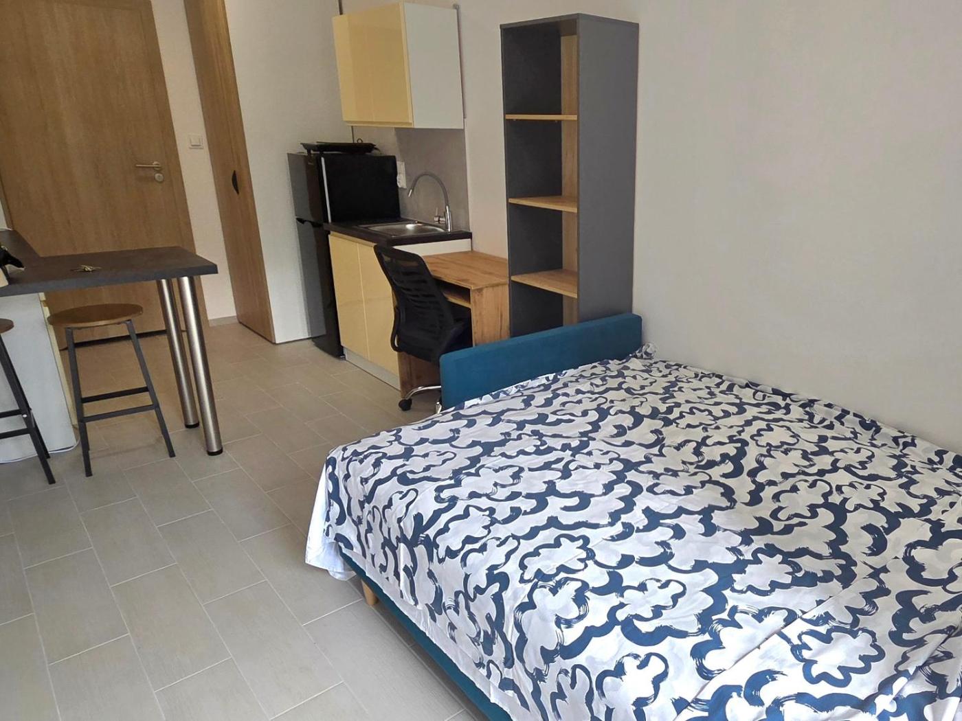 Studio typu Standard. The apartment has 1 bedroom, 1 bathroom and a kitchenette. The apartments kitchenette is available for cooking and storing food. The apartment features a terrace. The unit has 1 bed. Powierzchnia pokoju ok.: 12 mkw.