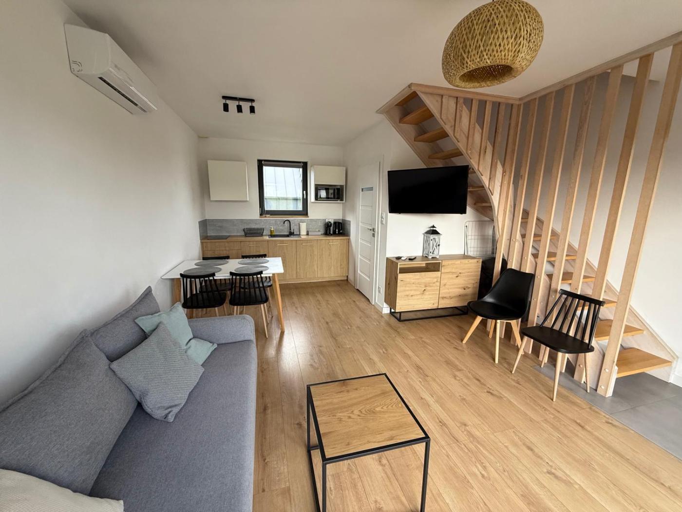 Domek z 2 sypialniami. Boasting a private entrance, this air-conditioned chalet comes with 1 living room, 2 separate bedrooms and 1 bathroom with a shower. Guests will find a stovetop, a refrigerator, a dishwasher and kitchenware in the kitchenette. The chalet also includes a barbecue. A seating area with a flat-screen TV, a coffee machine and a terrace are available in this chalet. The unit has 5 beds. Domek - 8 osobowy. Powierzchnia pokoju ok.: 50 mkw. ;