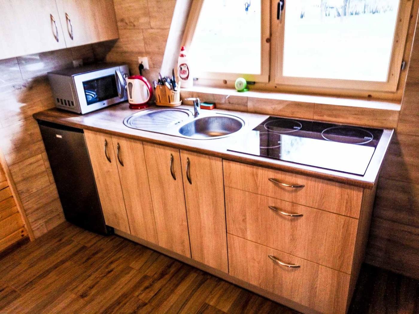 Bungalow Rodzinny. This family room features a balcony, kitchenette and kitchenware. There is also a private entrance. Rodzinny - 3 osobowy. Powierzchnia pokoju ok.: 55 mkw. ;