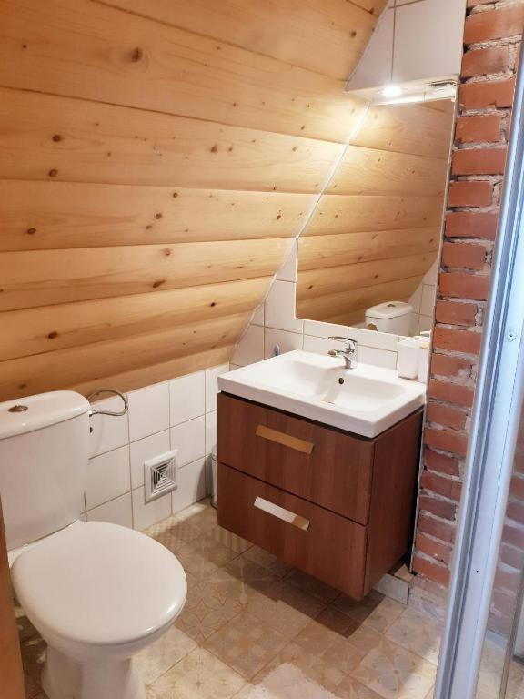 Domek z 1 sypialnią. This chalets standout feature is the fireplace. Boasting a private entrance, this chalet includes 1 bedroom and 1 bathroom with a shower. The well-fitted kitchenette has a refrigerator, kitchenware and an electric kettle. This chalet offers heating, a TV and mountain views. The unit has 1 bed. Domek - 2 osobowy. Powierzchnia pokoju ok.: 16 mkw.
